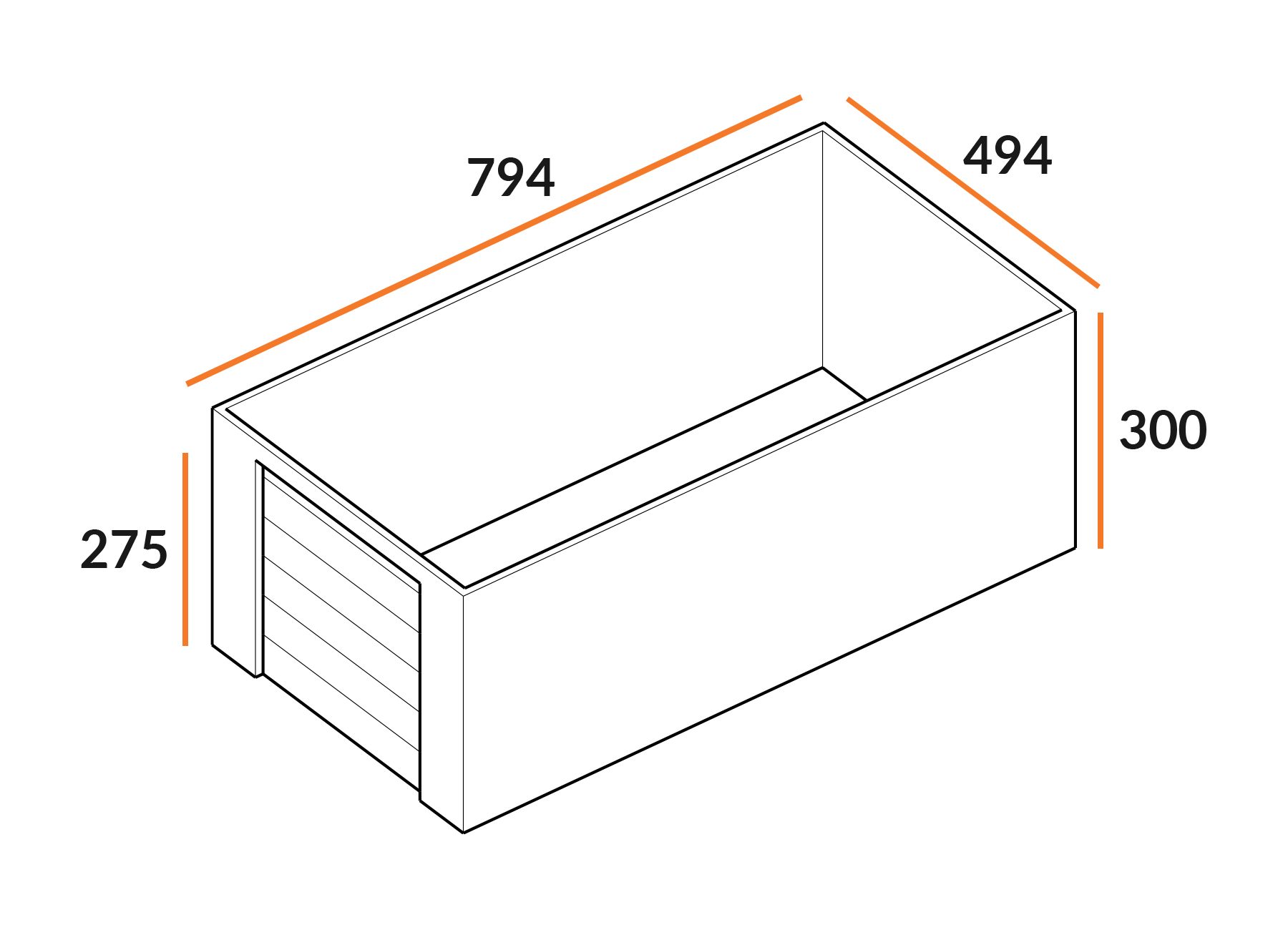 De garagebox heeft een doorrijhoogte van 275cm en is gesitueerd op de begane grond. De garagebox heeft een oppervlakte van 38m2. De afmetingen zijn 794cm x 494cm x 300cm (LxBxH). Let op: dit zijn buitenmaten.